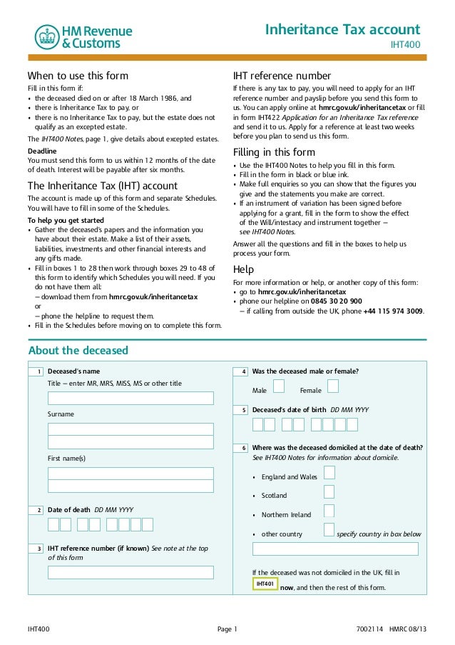 What is Compulsory Retirement? If the Estate is more complex if it contains foreign assets or the deceased made significant gifts before they died, for example then you may have to consider completing From IHT If you are planning to apply for Probate yourself, you will need to determine the value of the deceased persons' Estate everything they owned on the date of their deathin order to calculate whether Inheritance Tax is due; and if so how much.